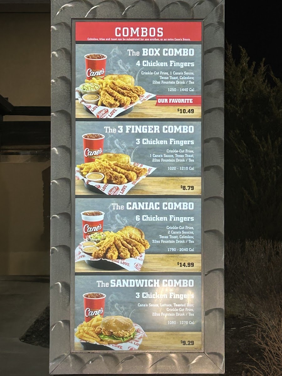 Introducing the Menu at Raising Cane's Chicken Fingers